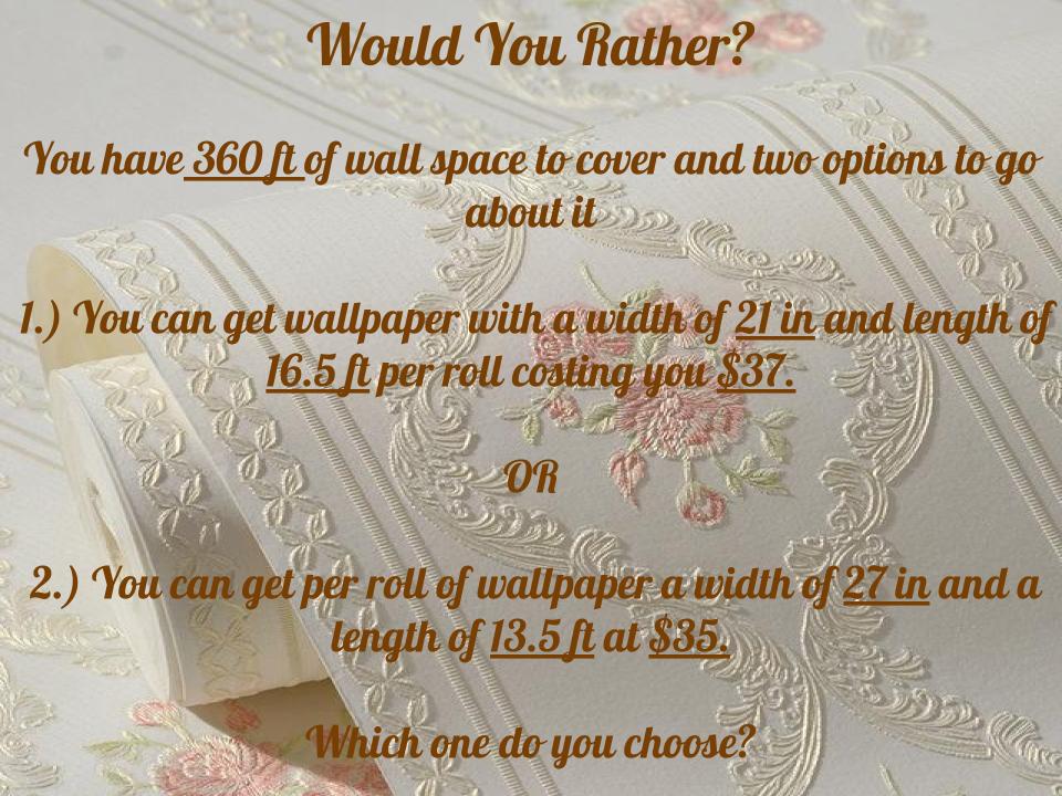 Would You Rather… August 3, 2018 stevens009 Whichever option you choose, justify your reasoning with mathematics. Student contribution from Callista J